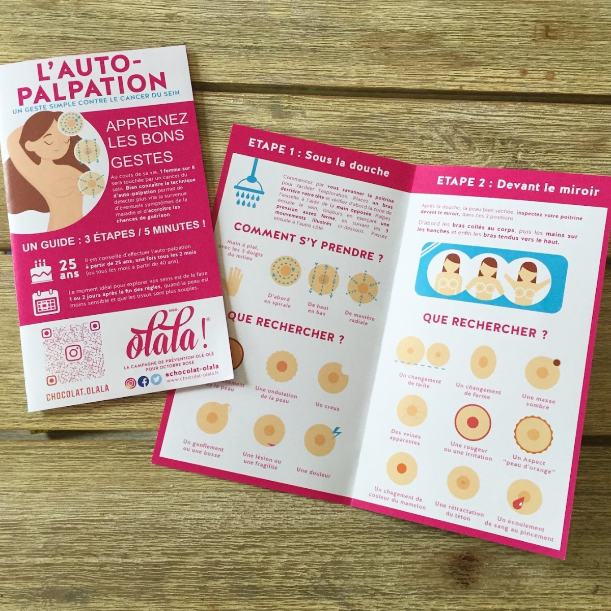 Chaque tablette est accompagnée d'un guide pédagogique des gestes d'auto-palpation ludique et pratique.